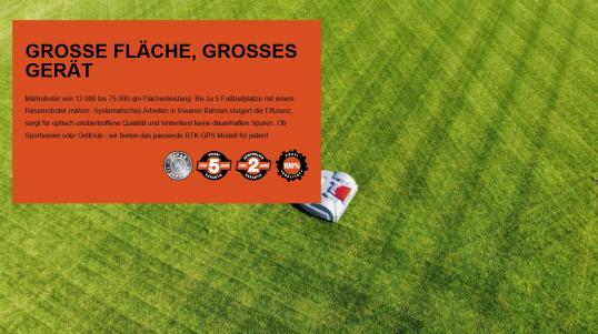 Der ECHO TM-2050 ist der leistungsstärkste Mähroboter der Welt. Mit einer Flächenleistung von bis zu 75.000 m² ist der Mähroboter ideal für große Sportanlagen mit mehreren Fußballplätzen oder auf Golfanlagen für Fairways und Driving Ranges geeignet. Bis zu drei Sportplätze können bei Tageslicht gemäht werden. Im Gegensatz zum herkömmlichen TM-2000 ist dieser mit einem RTK-GPS Empfänger ausgestattet.